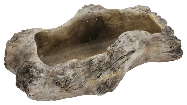 With its rich texture and wood tones, the large Haven Cement Planter features the realistic appearance of driftwood for an unexpectedly gorgeous planter. Enjoy this unusual planter nestled amongst perennials, carefully positioned in a rock garden, or even in an ocean-themed sunroom or living room. With its rich texture, the Haven Planter adds a dynamic look that enhances anything planted inside.