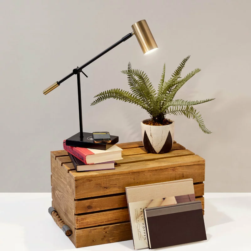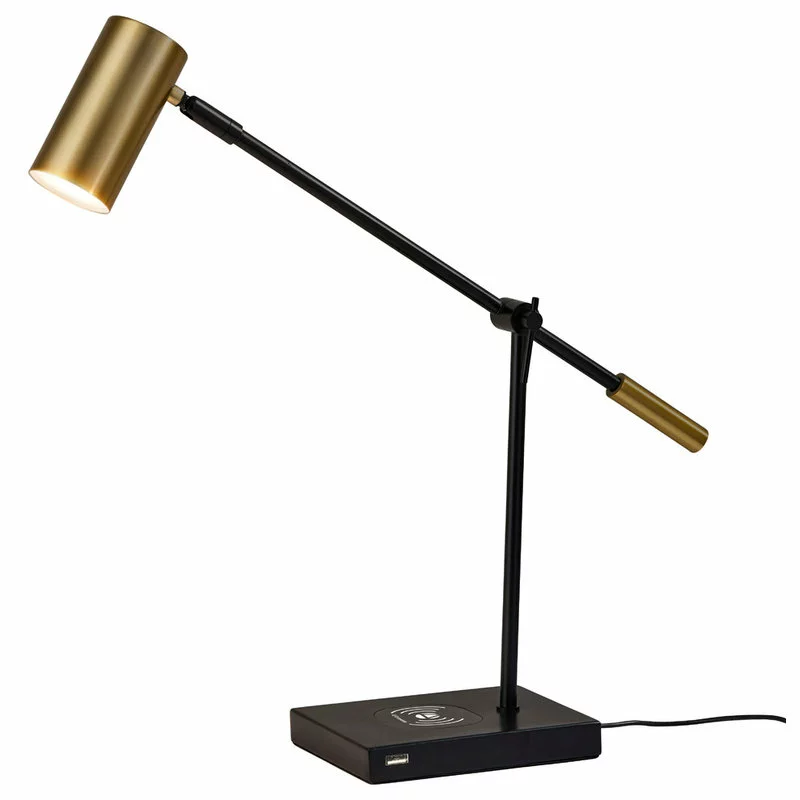 The Collette AdessoCharge LED Desk Lamp is an adjustable, mid-century modern styled LED Task Light that includes a wireless charging pad with Qi inductive charging technology. Many smartphones have Qi technology built in, so just place your phone on the pad and it will charge right up. No cords, no mess. It’s that easy! All AdessoCharge product is Qi certified by the Wireless Power Consortium. Our product has been tested and verified to be safe and in compliance with the Qi standard. The AdessoCharge pad supports 5W charging on contact with the charging pad, which gets your phone from 0% to 100% in just 3-4 hours, depending on your phone model. A USB is located on the base and can charge up a second device simultaneously. AdessoCharge is unique in that you can use the AdessoCharge pad, the USB and the 7 Watt LED light all at the same time with maximum efficiency of all three. A sleek AdessoCharge pad design that is flush with the surrounding area provides an attractive charging station with easy access to your phone while its charging. Just plug in the lamp and the charger will work. The light on the lamp does not even need to be turned on. This wireless charging pad will charge your phone through most materials, do you do not even need to remove your case! Only metal will hinder the function of the charging pad to charge through the case.