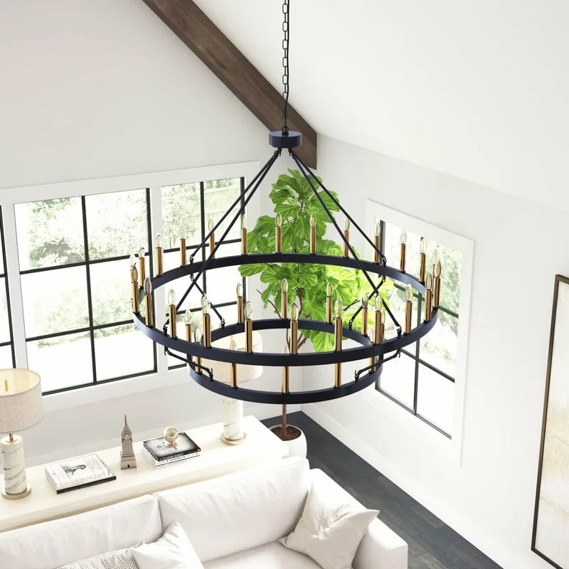 This wagon wheel light is a statement piece, perfect for a large family room or kitchen. It has a rustic farmhouse feel with a modern edge. Ideal for any business or home which is looking for a light that will set a country atmosphere. Using the warm glow of Edison lighting creates a cozy atmosphere in the room.