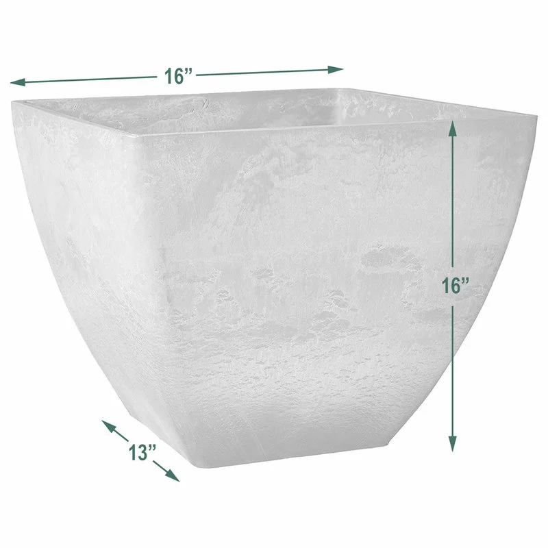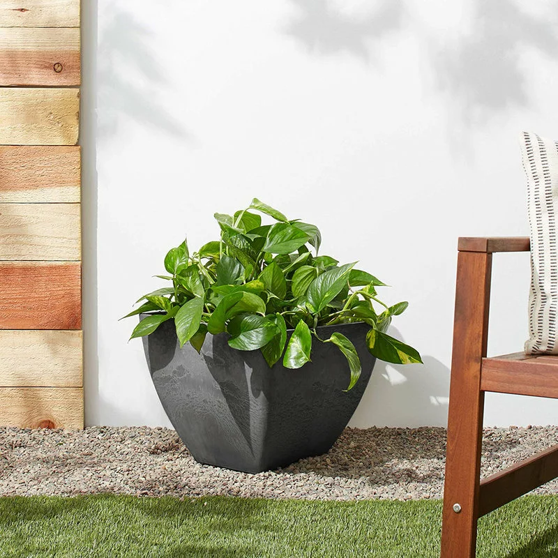 Showcase your favorite flowers and greenery in the ecofriendly Simplicity Square Pot. Made from a mix of recycled polymer, stone powder, and wood dust, this charcoal gray pot is lightweight, weather-resistant, and durable. Its simple shape and solid color lends to its versatility.