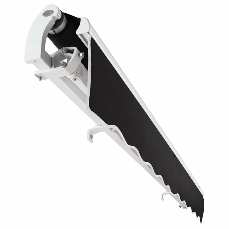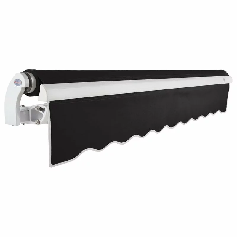 The MAUI-LX a heavy duty value added Retractable Awning – MAUI (A Beauty-Mark brand heavy duty standard retractable awning by Awntech). The heavy duty, energy saving MAUI is a standard retractable awning that comes in manual or Motorized with remote option versions. It is a heavy duty awning with powder coated in white. The available sizes are starting 8 ft. wide up to 24 ft. wide with 7 ft. projection up to 10 ft. standard projection with optional 11. 5 ft. and 12 ft. projection for 14 ft. wide and larger models. The fabrics are 100% solution dyed acrylic and available in many solid and striped patterns to choose from. The valance can be removed and stored in the winter. It will turn your outdoor living space into a personal retreat in the summer and retract for the warmth of the sun in the winter. This awning is designed for wall mount only. Some accessories that may be purchased in addition to your awning are winter cover, wind sensor, breeze supports and more. Enjoy your summer/outdoors with out fear of getting sun burn and turn the outdoors in to party atmosphere.