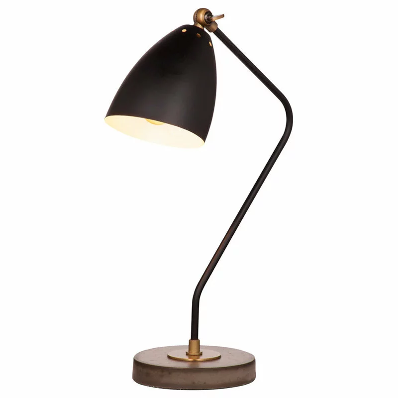 The Correll Task Lamp features a metal body on a cement base finished in matte black and brass.FeaturesProduct Dimensions 12″L x 6″W x 18″HFinish Brass wCementMaterial MetalShade Dimensions 4.7″L x 4.7″W x 6″HBulb Wattage 60 WattLamp Base Dimensions 6″L x 6″W x 1″HSwitch Type On-OffCord Length 60″Assembly Required YesMade in ChinaDelivery OptionsFree Curbside Delivery IncludedWhite Glove Delivery available for additional Charge