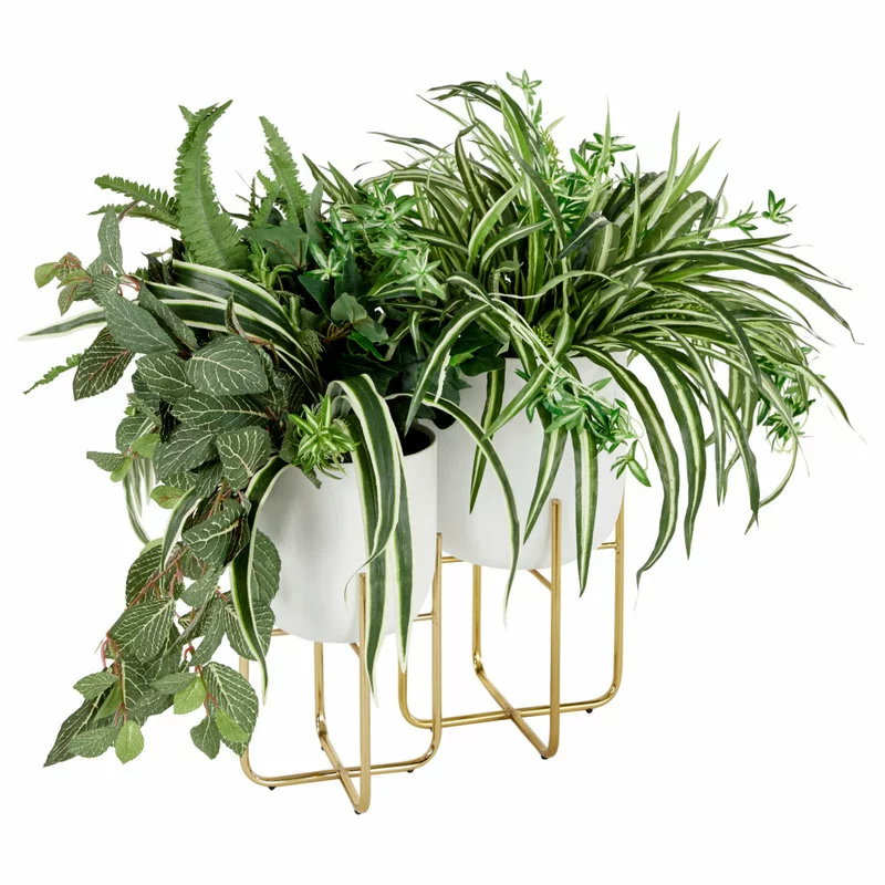 Be the first to review “Brimfield & May Contemporary Style Large Round Metallic Metal Planters In Stands, Set Of 2” Cancel reply