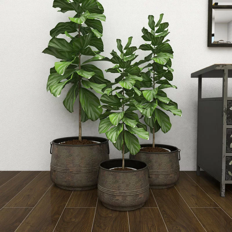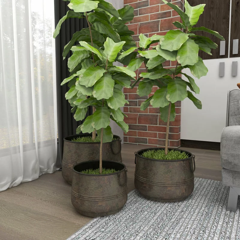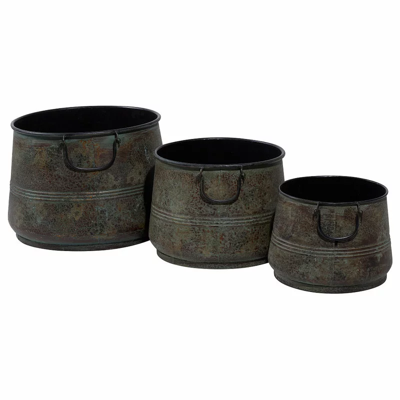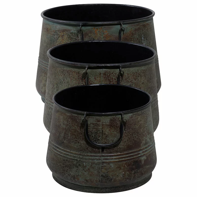 Arrange together or separately in rustic-inspired lobby, living room, bedroom, or even outdoor spaces like patio or garden. This item ships in 1 carton. Please note that this item is for decorative purpose only and is not food safe. Suitable for indoor and outdoor use. Maximum weight limit is 30 lbs. Planters do not have drainage holes but they are not watertight. This planter comes as a set of 3. Rustic style.
