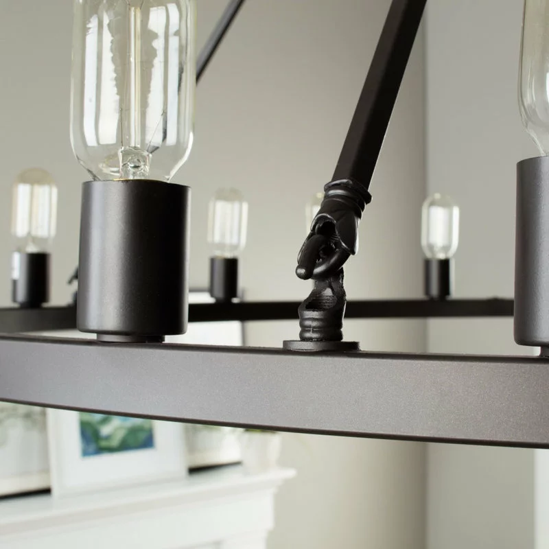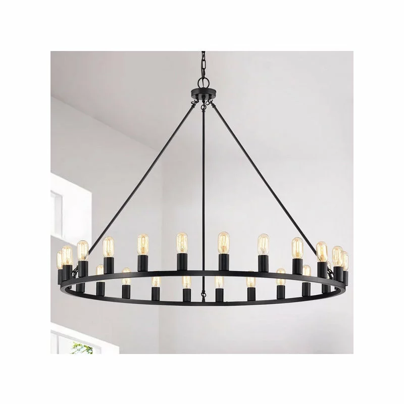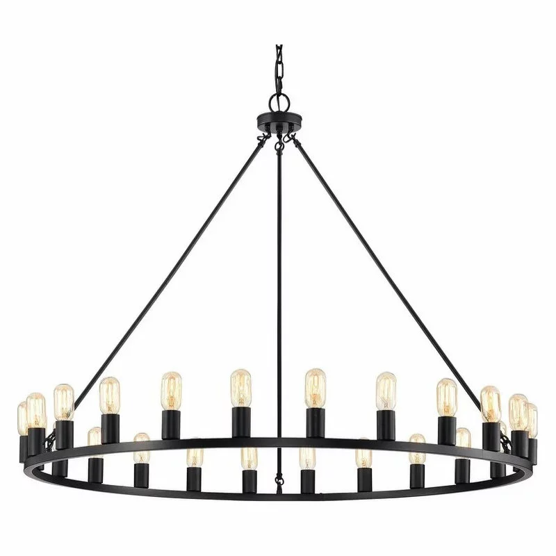 Fill your home with the stylish illumination of the 24-light chandelier. The grand circular base is coated in an oil-rubbed bronze finish and studded with twenty-four Edison lightbulbs for a trendy industrial feel. This stunning chandelier is suspended from four chains with an additional 72-inch ceiling chain to make a bold statement in tall entryways and two-story rooms.