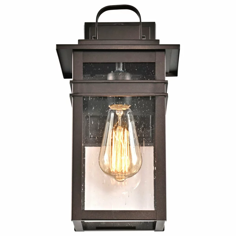 Modernize your home with this lovely, rubbed bronze out door walls sconce! This fixture is recantangular in shape, and surrounds seedy glass inserts. It also has an open base, making light bulbs changed very easy. The fixture takes one 100W bulb and is compatible with flourescent, incandescent and LED bulbs. All of our wall sconces are UL listed, and dry, damp and wet listed, to survive all weather conditions, hot and cold.