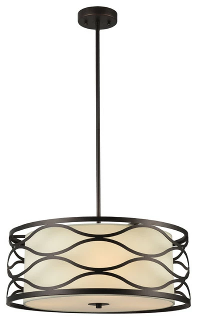 GWEN, this transitional 3-light pendant fixture features oil rubbed bronze finish that will complement many transitional, loft and urban decors. The down rod is 54 inches long. It is comprised of four 12-inch rods and one 6-inch rod. They can be used individually or combined to create the desired drop length.