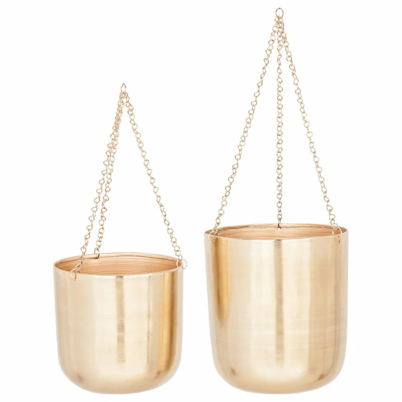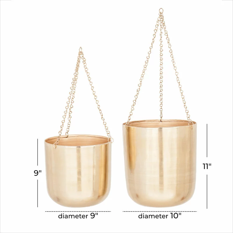 CosmoLiving By Cosmopolitan Large, Round Metallic Gold Metal Hanging Indoor & Outdoor Planters, Set Of 2