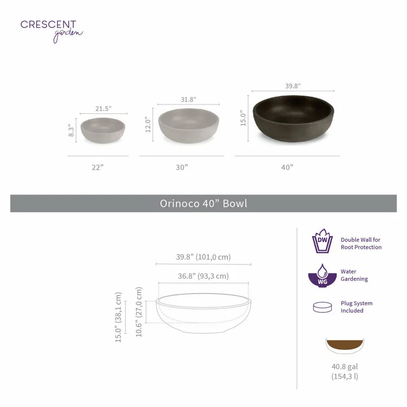 Creative options are limitless with these attractive, functional, and massive Orinoco bowls. Whether you create tiered garden by stacking the three sizes or design your own unique fountain, you can rely on their durability to last throughout the weather extremes. An ideal bowl planter for succulent gardens too.