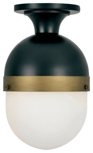 Brian Patrick Flynn’s futuristic Capsule Collection adds a touch of industrial grace to front entrances, outdoor chat settings or romantic garden pathways. The egg-shaped design of this outdoor fixture combines a matte black base and opal frosted white glass globe with a distinct, textured gold band. The innovative three-toned design brings instant personality and creates a unique statement for any outdoor space. Capsule can be used outdoors or indoors.
