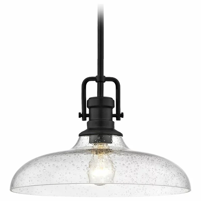 - Seeded Glass Pendant Light Black Finish 14-Inch Wide