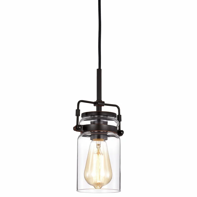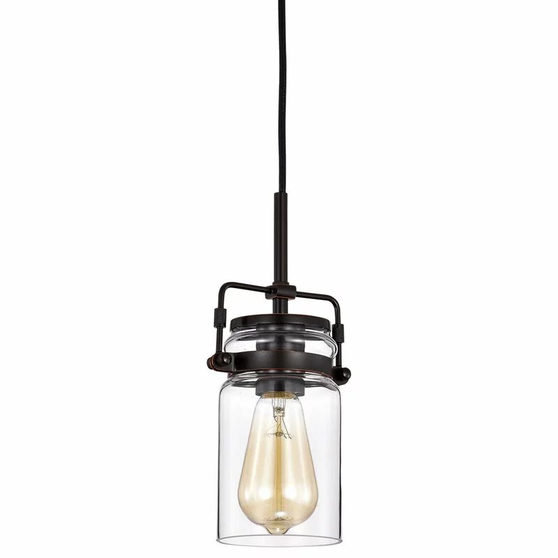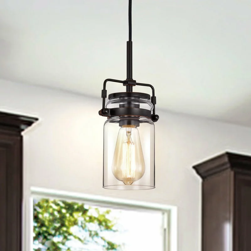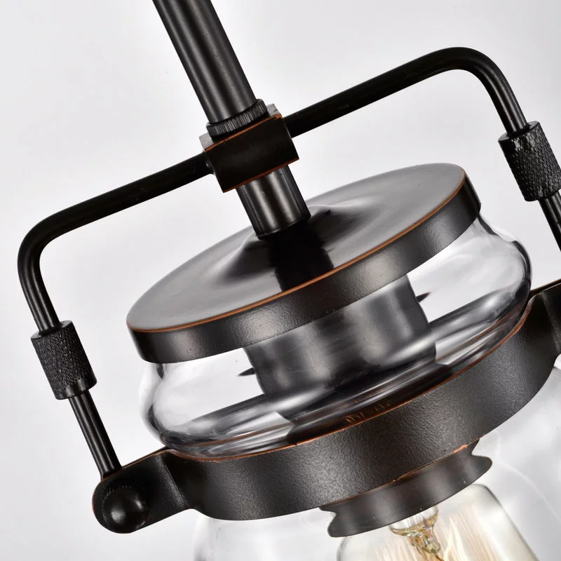 - Oil Rubbed Bronze pendant light with glass jar sconces