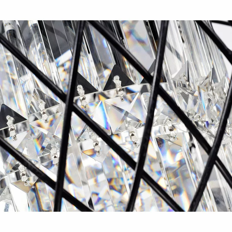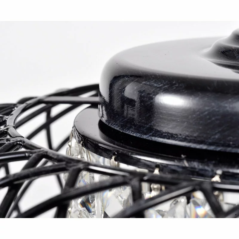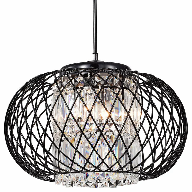 This gorgeous spherical chandelier makes a stunning addition to your home. Shimmery rectangular crystal fringe are surrounded by a black iron basket shade that accents the three bulbs creating a visually stimulating effect. It has a 40-in adjustable chain making it perfect for any ceiling height or room size.