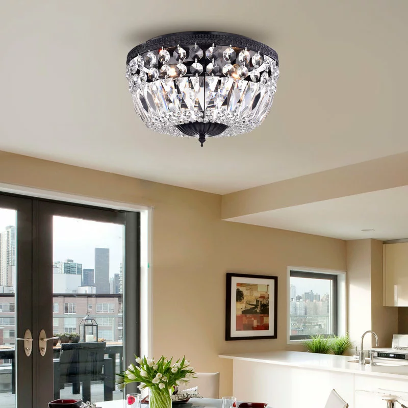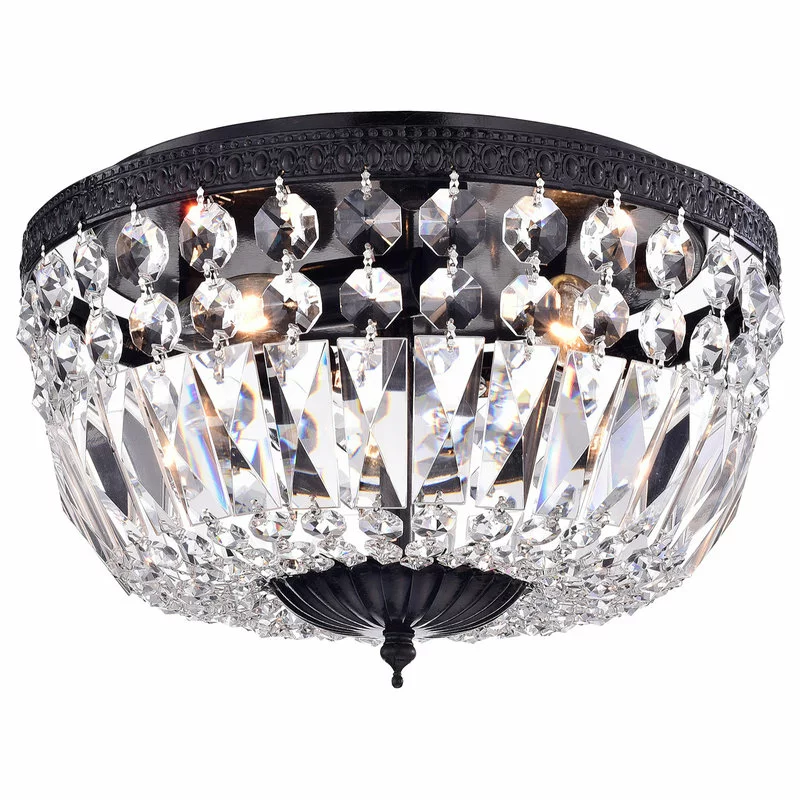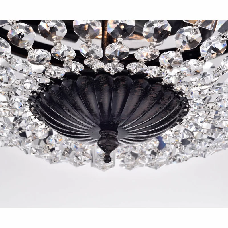 The Style 3-Light Crystal Basket Flush Mount features an elegant design influenced by current trends. It features a metal and crystal shade and an antique black finish. This transitional-style semi-flush lamp gives off a soft, warm glow. The opulent designs from Edvivi LLC capture transitional style for your lifestyle.