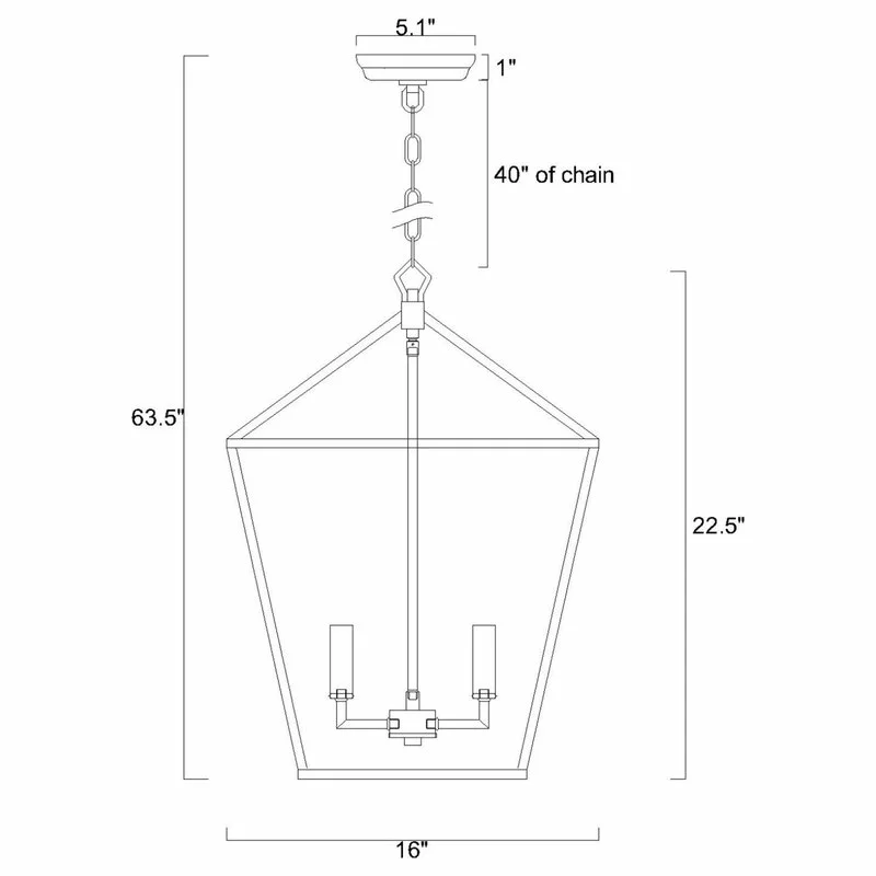 - Chain Length: 40 in; Can be shortened to your desired length; Maximum Height: 63.5 in.