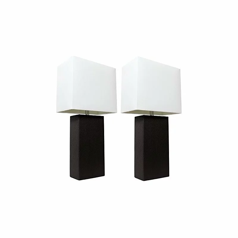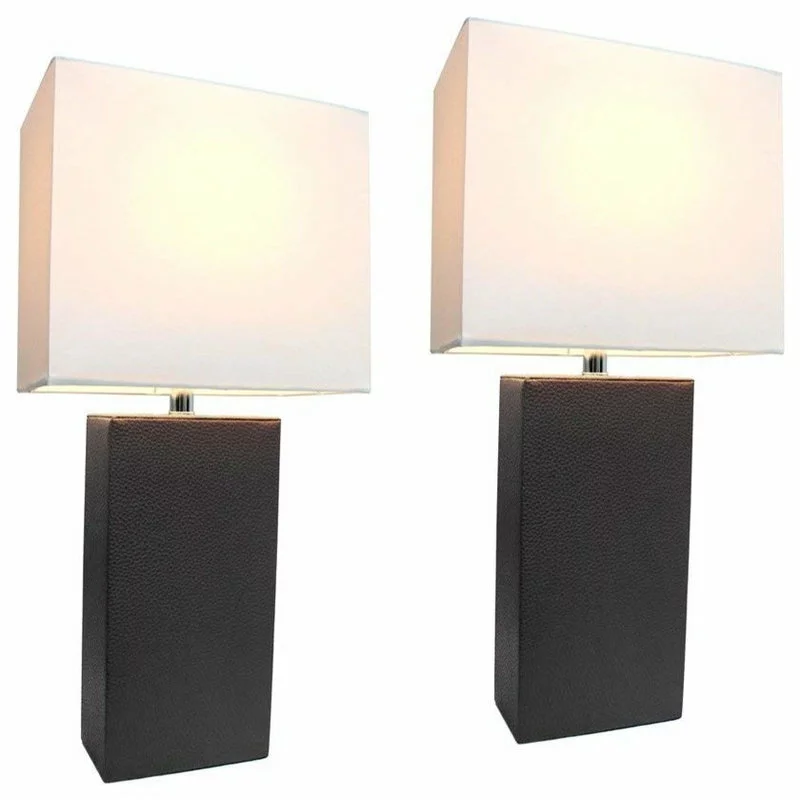 Elegant Designs 2 Pack Modern Leather Table Lamps with White Fabric Shades, Black.