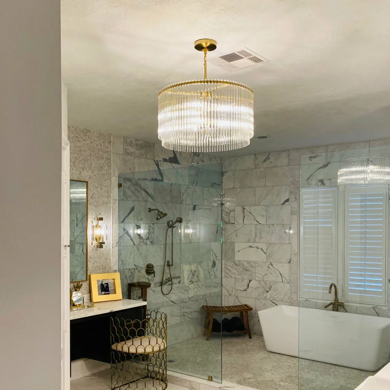 - A canopy and rods (2×6″, 2×12″ and 2×18″) in brushed gold, Included.