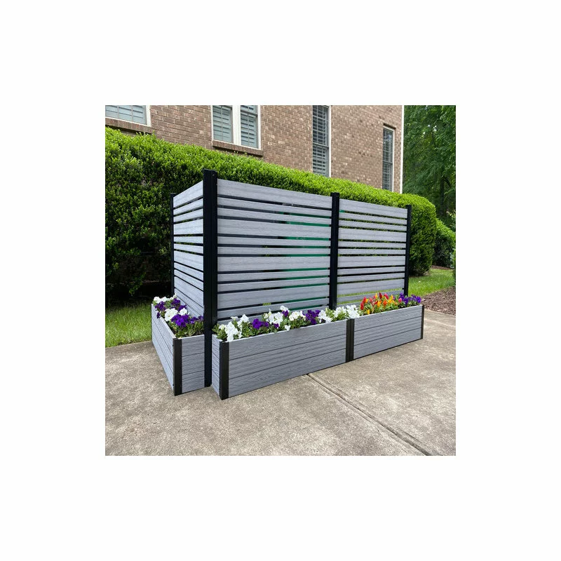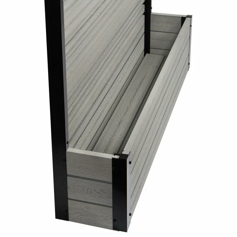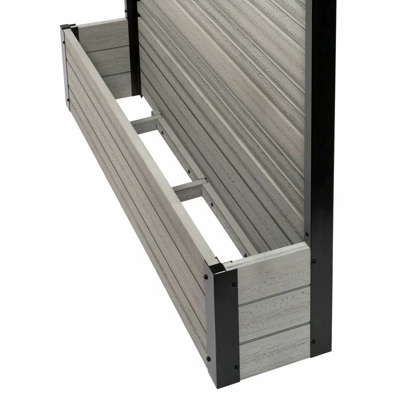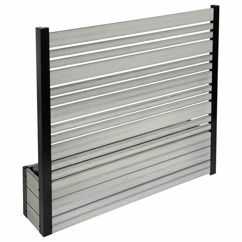 - DIMENSIONS: This slatted WoodTek vinyl privacy screen and planter box measures 44” H x 46” W x 9 1/2” L