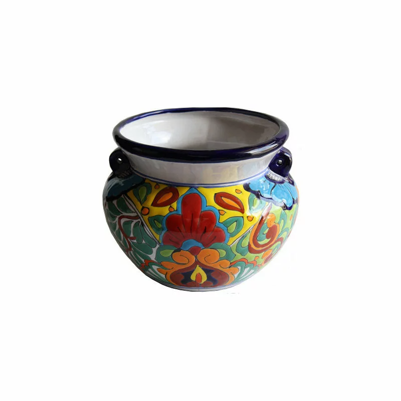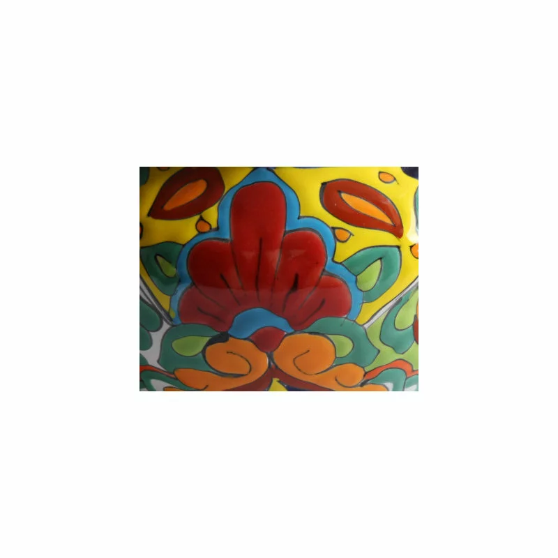 This is a stunning and vibrant pot. Painted with very bright and intense colors, a unique addition to your garden landscape! The opening is about 12 diameter and the internal height will hold a plastic pot about 12″ tall.Talavera Ceramic pots have a drilled hole at the bottom; this enable them to be used as a planter. If you plan to use them for this purpose, we recommend to use a smaller plastic planter to put it inside; this will prevent rusting to happen and will give a longer life to the pot.This pot is handcrafted and hand-painted, which means that no pots are the same! There might be small differences in size, weight and colors. If you want to delight somebody special with an unique handcrafted gift, this is what you are looking for!”