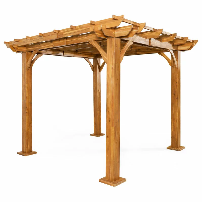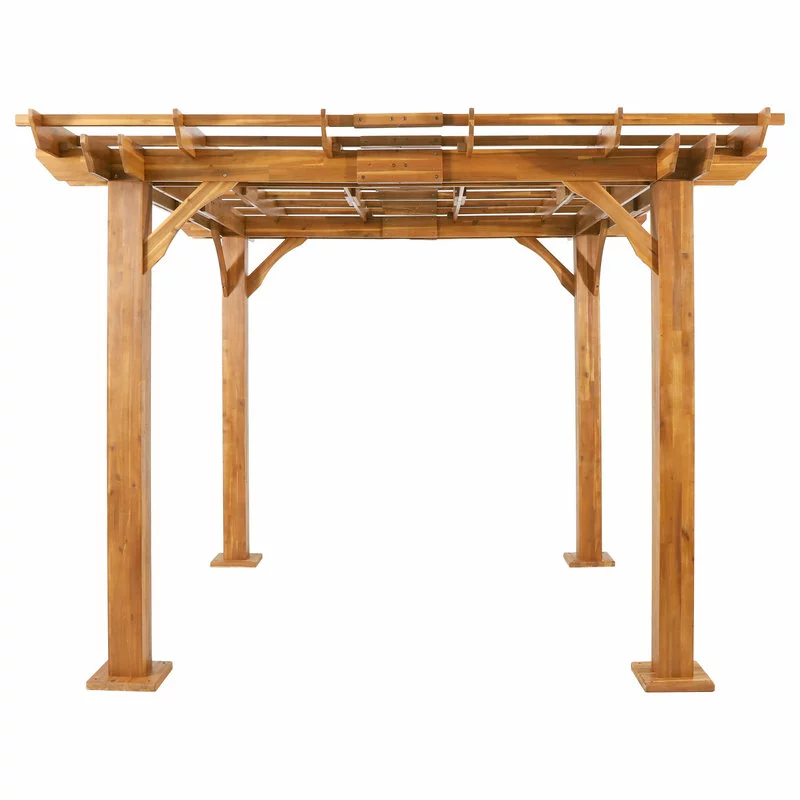 Create a relaxing oasis in your own backyard with a durable and outstanding structure. Beautifully crafted from rich acacia wood, our delightful pergola showcases a solid and sturdy framework that not only upgrades your space with a dash of rustic charm but also offers a multitude of functions. The classic design and open rafter allow you to place this accessory in any space of your yard or patio, providing both refreshing shade and privacy for you and your family to enjoy.