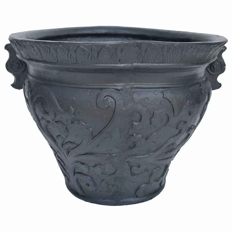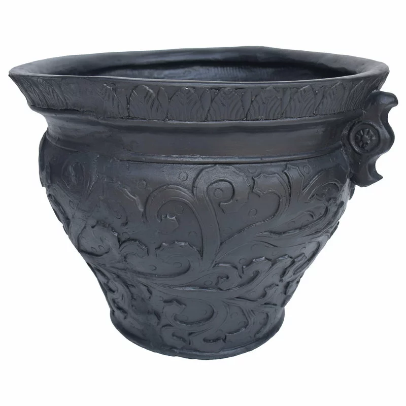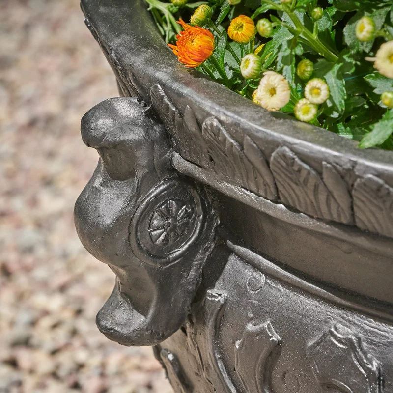 - ELEGANT STYLE – Lightweight concrete gives this planter a high-end, faux-stone appearance. This round urn sports a Roman design with botanical accents.