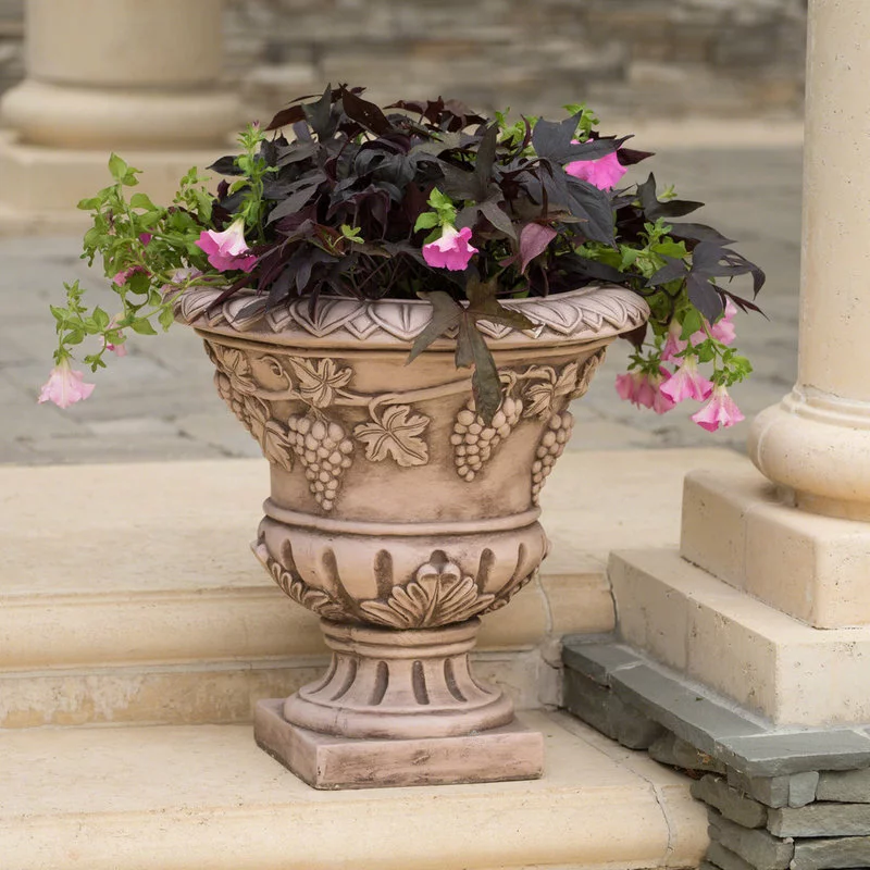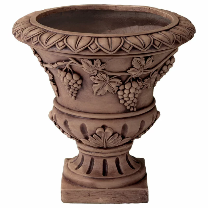 The Porta Light Brown Stone Planter adds a touch of elegance and class to your home decor. Ornate with carved grapes design and other antique style patterns synonymous to Roman architecture, this impressive planter is suitable indoor or outdoor, whether showcasing your favorite plant or as a standalone art piece
