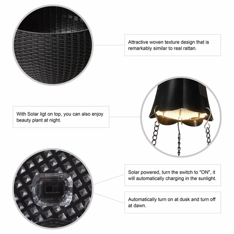 With a classic sense of style and special lighting design, the hanging sphere planter features a contemporary craft look for a delightful play of light and a natural splash of fun. You’ll love the eye-catching wicker-style design of these attractive planters, and you’ll appreciate their exceptional resilience and durability. Unlike real wicker, these pots are made out of plastic that’s designed to look almost exactly the same. It even has the same texture, so anyone who sees them is likely to believe they’re actually made out of rattan.
