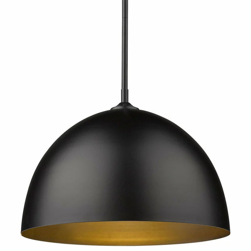 Golden Lighting’s Zoey Collection is proof that simple can be beautiful. This elegantly utilitarian series has the chic versatility to enhance the style of a variety of spaces. The smooth lines of this minimalist design pair well with transitional to modern decors. The cleanness of the contemporary look gives the fixtures a slightly industrial feel. Zoey is offered in two sizes with three smooth finish options; Matte Black, Olympic Gold, and Pewter. The shades are available in three matte finishes; Matte Black, Matte Gray, and Matte White. The color of the shade’s interior consistently matches the shade’s exterior finish. The silhouette of the metal shade is a modern update to the classic dome shape. This large pendant will provide bright light when grouped over a kitchen island or hung individually over a breakfast table.