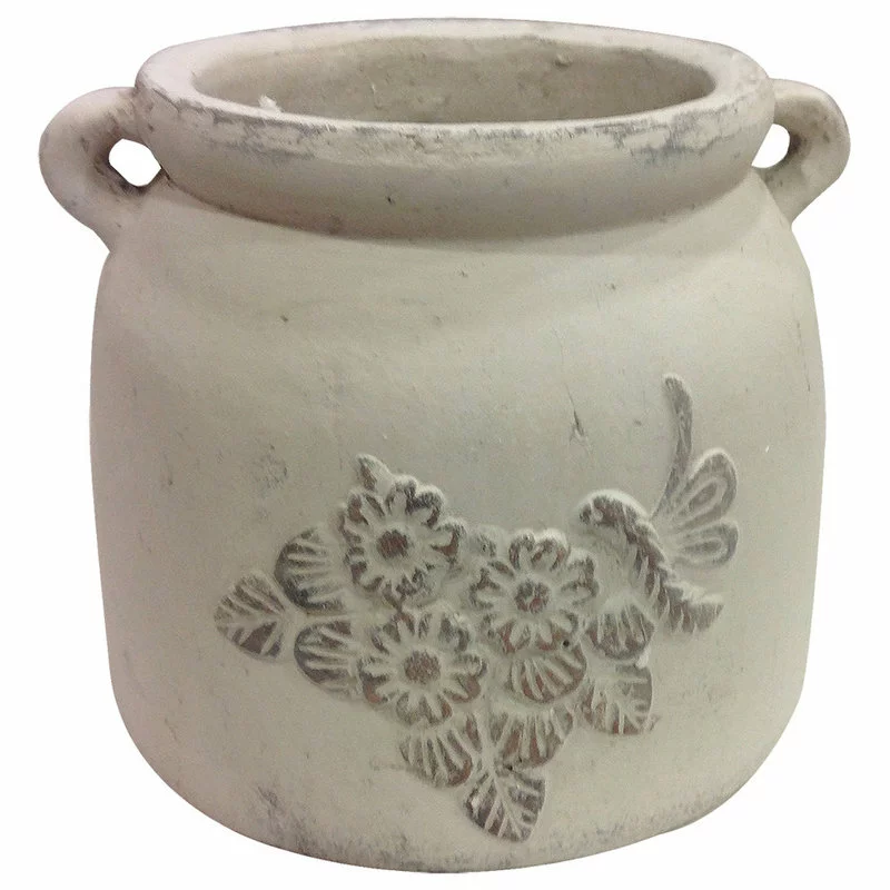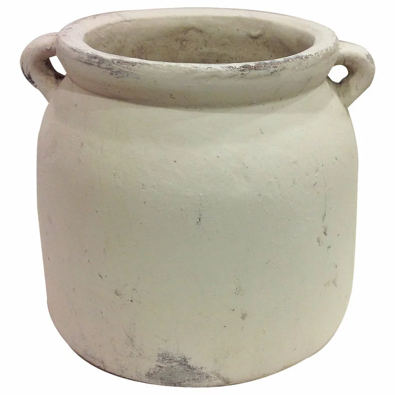 Goodmanandwife Heavy Hand Pressed Ancient Stressed Terracotta Flower Pot, Vintage White