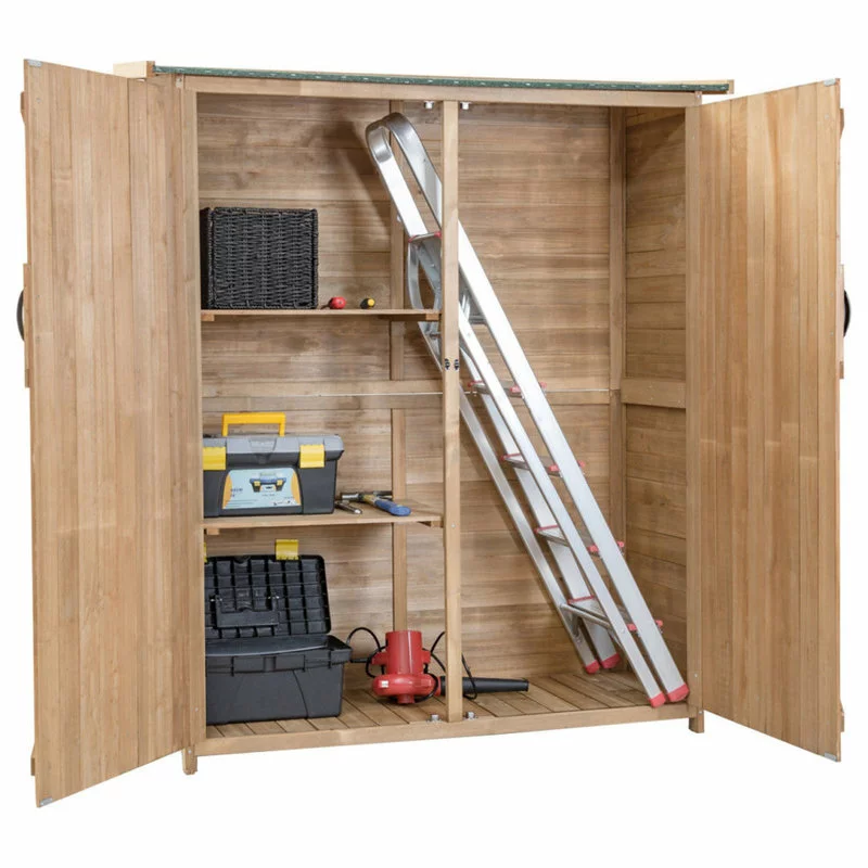 - Our wooden garden shed is an ideal outdoor storage for items such as watering can, hoses, spades, pots. It is fine and very durable. Waterproof coating resist to bad weather. This shed can help you to save more space and keep your yard neat. Dont miss this chance to purchase the item that is functional and practical. Hurry to take it to your yard!
