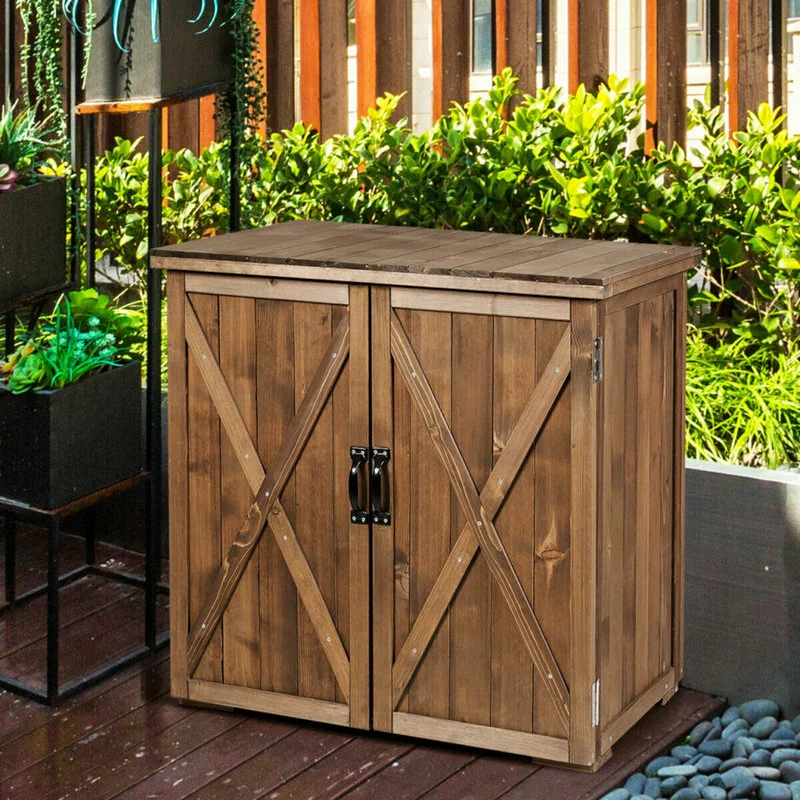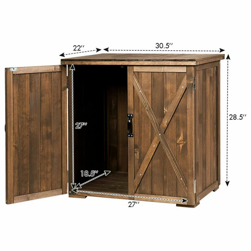 Are you still looking for a storage shed for your tools? This wooden tool cabinet will be a perfect storage solution for you! fine fir wood construction with sturdy connections features excellent durability and stability. And the smooth spray painted surface is easy to clean and will not scratch you during use. In addition, the interior space offers spacious space for your different tools, which helps to keep your home tidy and makes your work easier. With a natural and simple appearance, this tool storage shed will fit well with any home style. Don’t miss it! Plus, the assembly is easy with clear instruction and all necessary hardware.