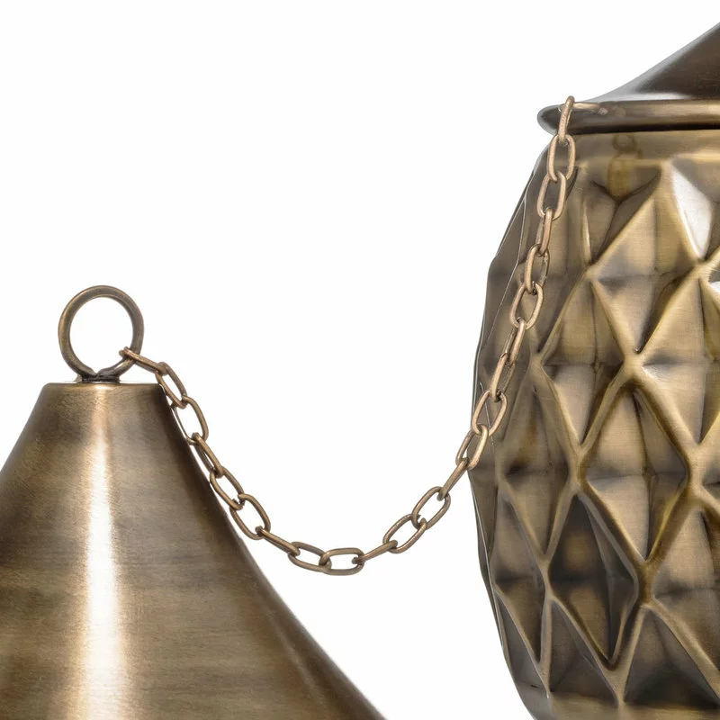 - Perfect size for any location. Approximately 5.5 inches in diameter and 8.5 inches high. Brass chain and snuffer. Clear-coat lacquer finish.