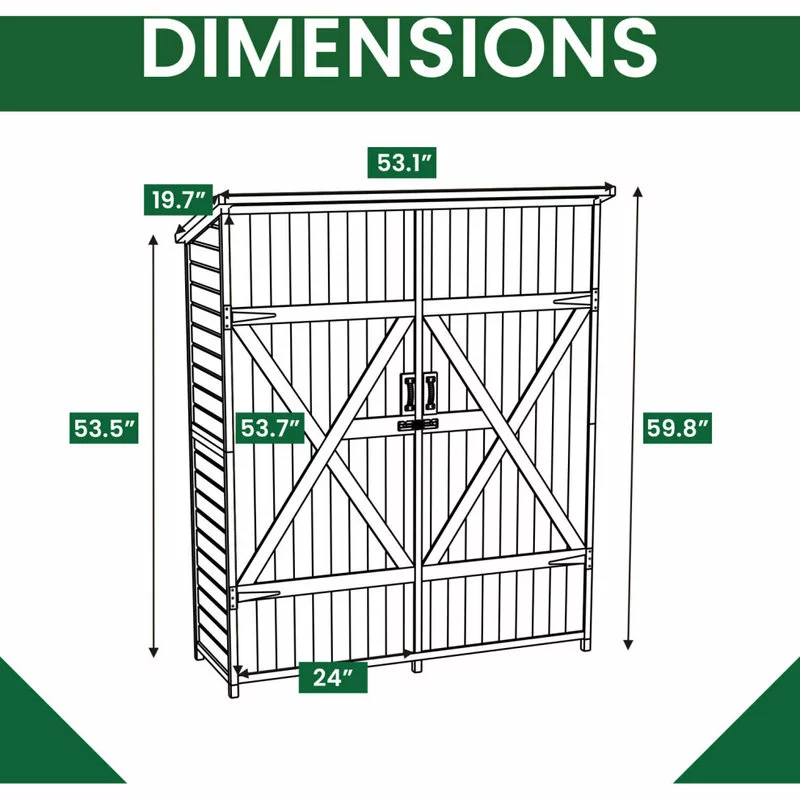 Hanover Outdoor Wooden Storage Shed For Tools, With Shelf And Latch