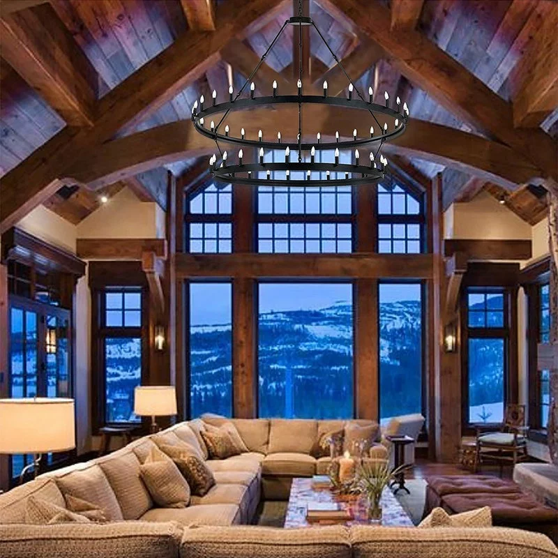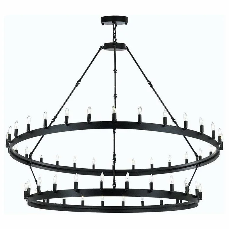 - Wrought Iron Vintage Barn Metal Castile Two Tier Chandelier Chandeliers Industrial Loft Rustic Lighting W 63″ H 60″