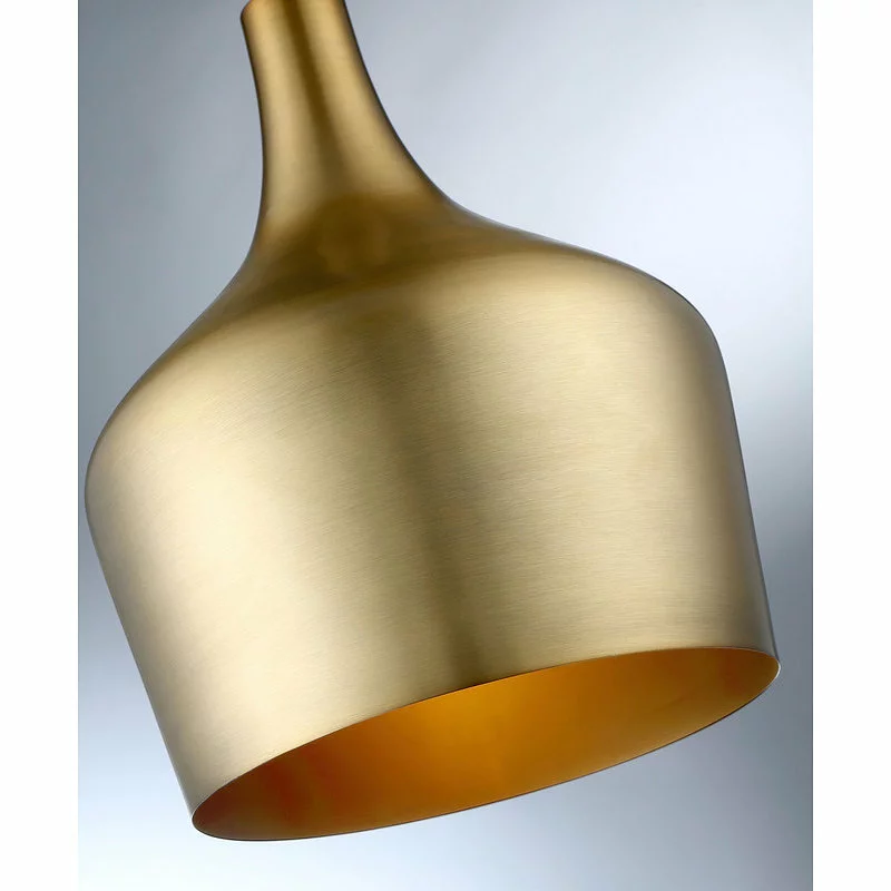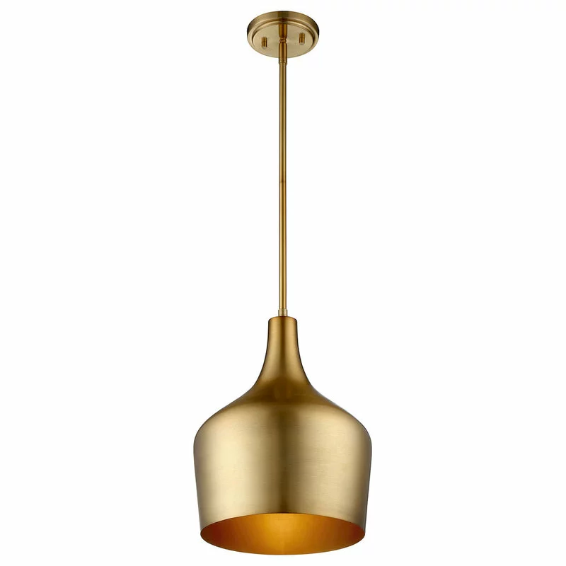 The contemporary style of this pendant is an excellent choice for fashionable illumination. It has a solid metal shade and is finished in natural brass.