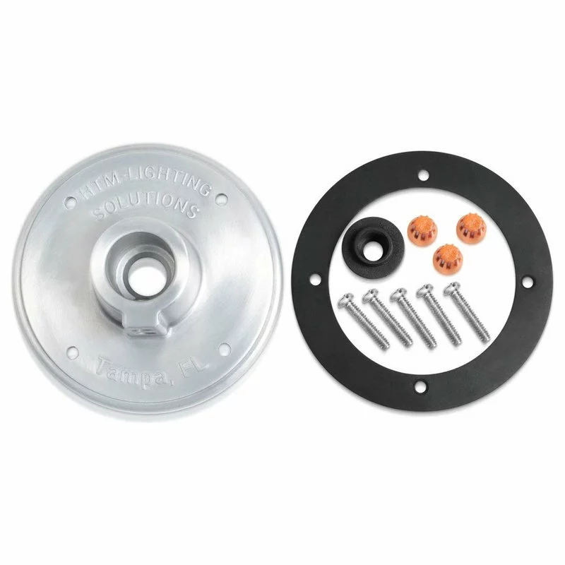 The gooseneck arms are sold with a 4.5in. diameter mounting plate intended for a heavy-duty round weatherproof junction box and come with 5x 10-24 x 1” Philips Head Screws, UL Listed Wire Cap Nut Connector, Waterproof Plug, Allen Key, and a Rubber Gasket to act as a sealant.