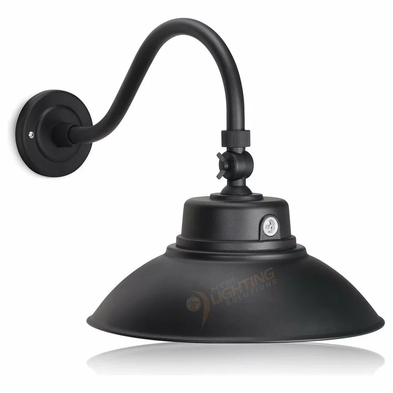HTM Lighting Solutions NEW Modern 14 in. LED Gooseneck Barn Light Fixture for indoor and outdoor use comes with a complimentary photocell, and swivel head, and is extremely simple to install with the outdoor rated mounting plate.
