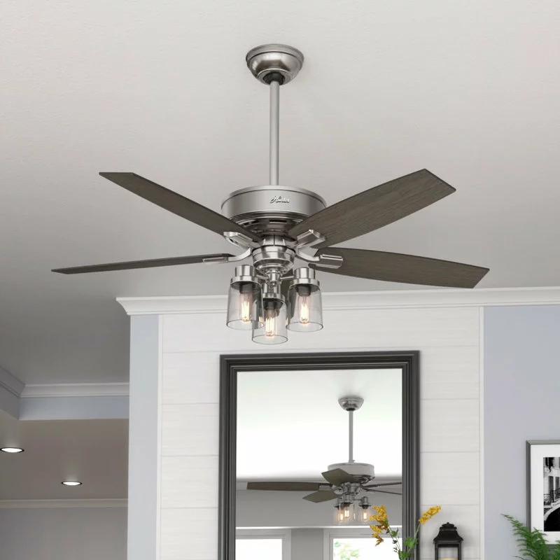 Regarded as one of our best ceiling fans by designers and homeowners alike, the renewed classic look of a Bennett ceiling fan will add flair to your traditional living spaces. The smoked yet clear multi-light side glass completes this fan’s harmonious color palette while adding a touch of glamour. The energy-efficient LED Edison bulbs enhance the ambiance of your room while a powerful WhisperWind motor will make your formal, chic spaces as functional as they are stylish.