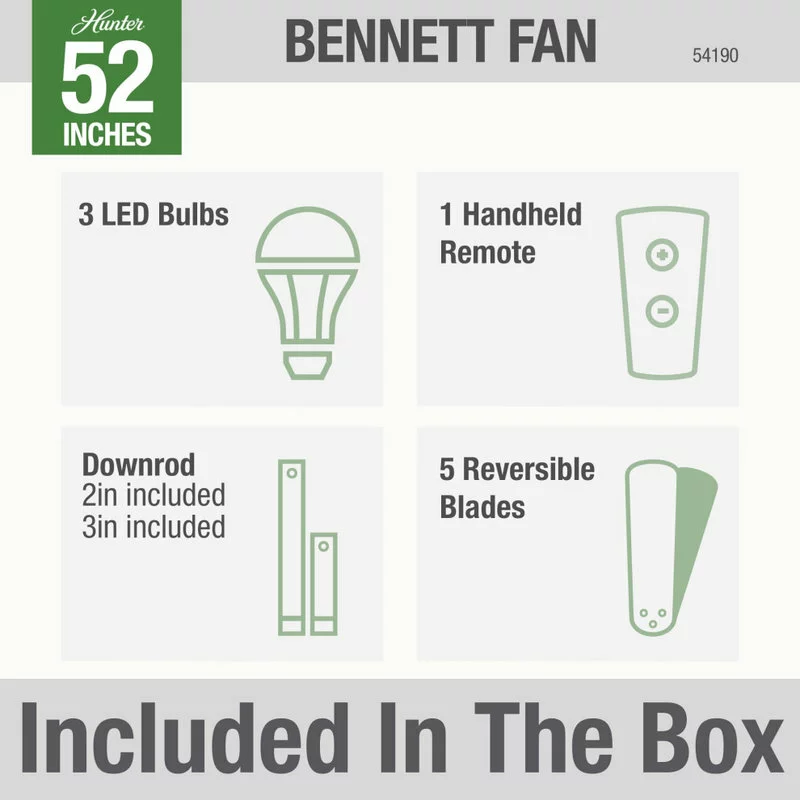 - Includes 3” and 2” downrods to ensure proper distance from the ceiling and optimize air movement at your preferred blade height