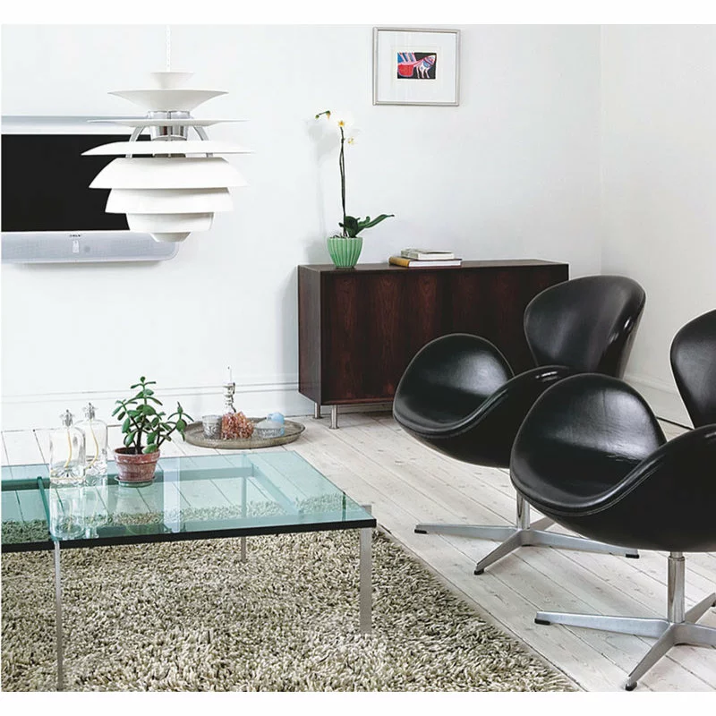 The PH Snowball is a 360-degree glare free luminaire. Its geometry is designed to ensure all the illuminated surfaces of the shades are struck by the rays of light in the same angle, creating an even illumination.
