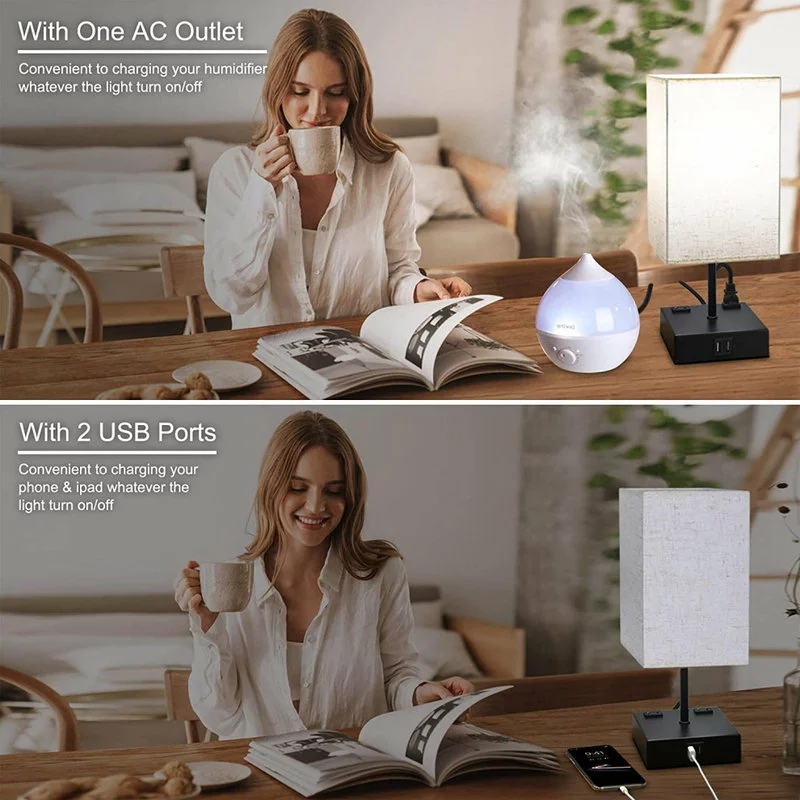 Table Lamp with 2 USB Ports and Outlets :Small Table Lamp added bonus of the USB charging ports and outlets makes it an ideal piece to put in your bedroom or living room. It is super easy to put together. USB table lamp support charging multiple items at the same time. It is functional, sturdy and aesthetically pleasing. Perfect size for nightstand.