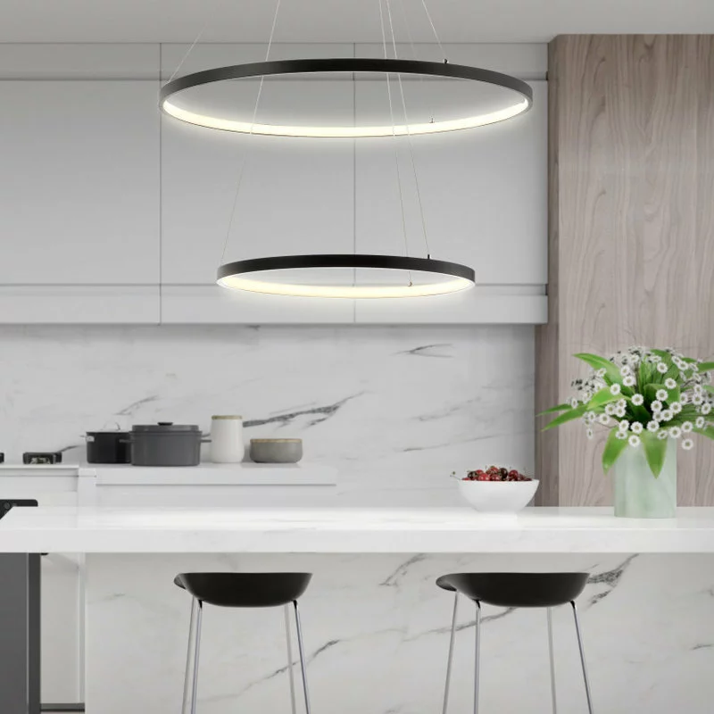 - Classic geometry gets a modern update in this hoop pendant/chandelier