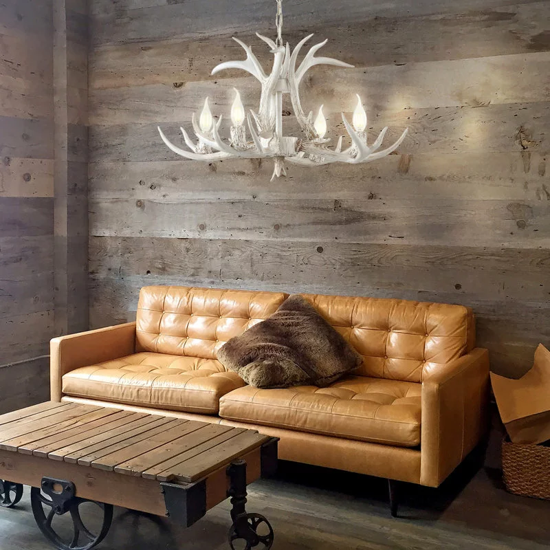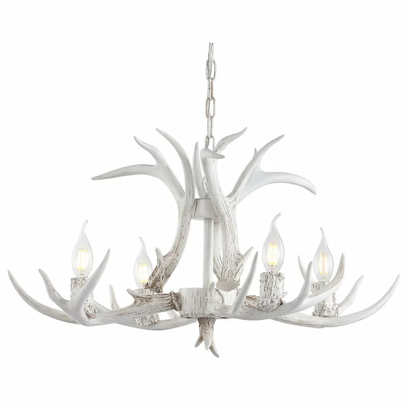 This faux antler chandelier transports us to our dream mountain home, bringing nature inside with a contemporary rustic touch. Featuring an adjustable metal pull, it can be adjusted to your ceiling height for a semi-custom look. Each unique finish brings a refreshing quality to this beautiful piece.