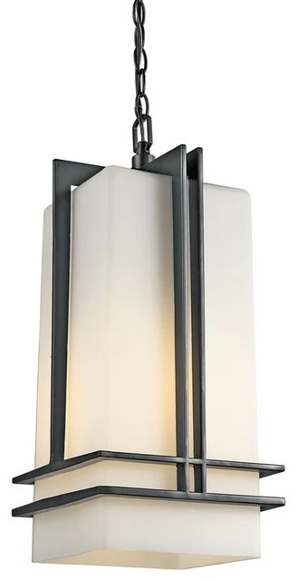 This 1-light hanging pendant from the Tremillo collection offers a smooth, clean profile. Double lines of Black finish form sleek perpendiculars that contrast well with the pleasant ambience of Satin Etched Cased Opal Glass. This design will mark any walkway or porch with sleek sophistication and well-balanced grandeur.