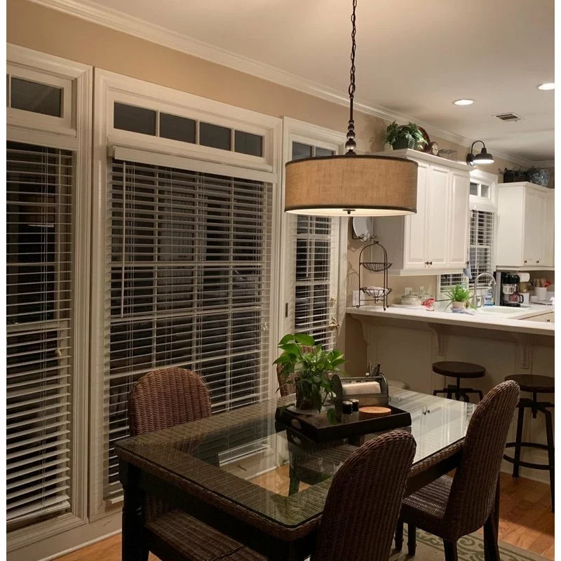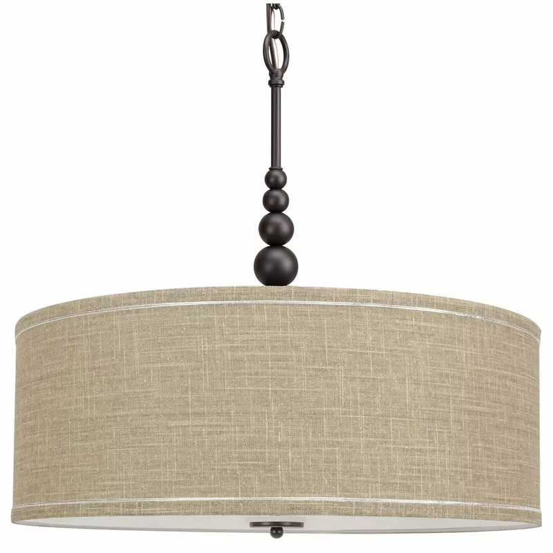- ELEGANT STYLE WITH A GORGEOUS GLOW: Chandelier includes a sand fabric drum shade and tempered glass diffuser. Stem is adorned with 5 beautifully crafted orbs portraying a sleek style evoking multiple styles including mid-century modern, glam & farmhouse