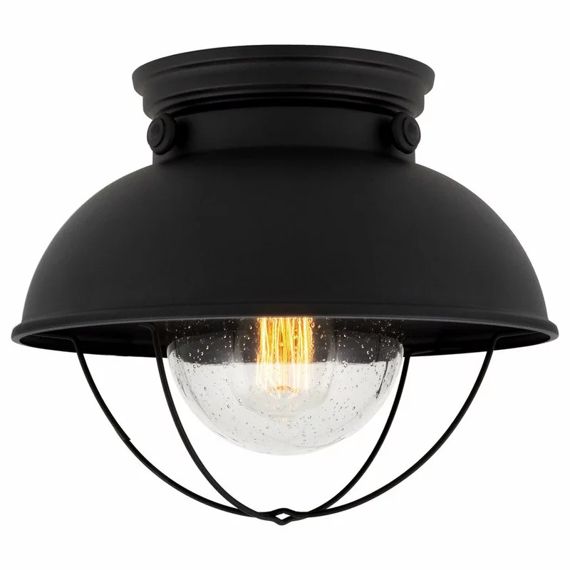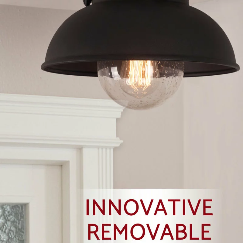 Kira Home’s Bayside 11″ nautical farmhouse ceiling light offers a unique atmosphere and style, showcasing a stunning, one-of-a-kind design. It’s cage design and beautifully seeded glass shade emits the perfect amount of light. Complete with high quality materials, Bayside is a versatile flush mount in a beautiful matte black finish that can be used both with and without the removable cage brackets. Brighten up even the darkest indoor and outdoor (covered) locations including a hallway in sets of 2-3, over kitchen or bathroom sinks, above a dining room table, under a covered patio or awning, or in hospitality/business settings such as hotels and restaurants. Need to set the mood? Bayside works with standard dimmer switches when paired with compatible bulbs.