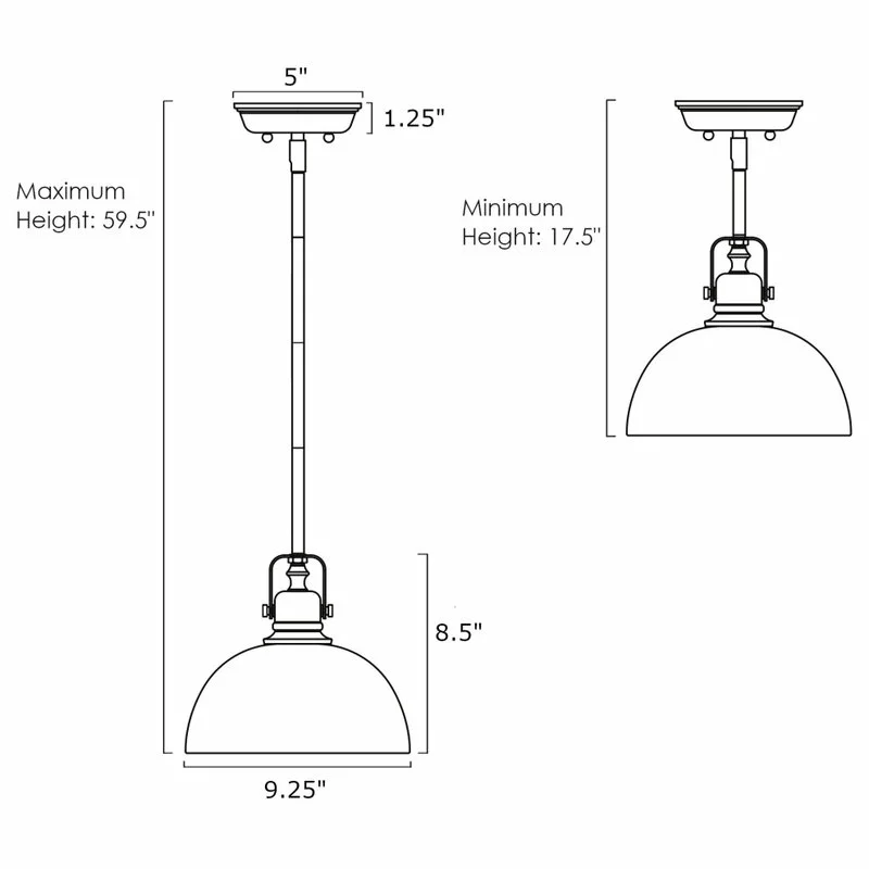 - DIMENSIONS: 8.5″ (H) x 9.25″ (D), Canopy: 5″ (D) x 1.25″ (H), Shade: 4.5″ (H) x 9.25″ (D). Includes (1) 6″ and (3) 12″ downrods for desired hanging height. Minimum/Maximum: 17.5″- 53.5″