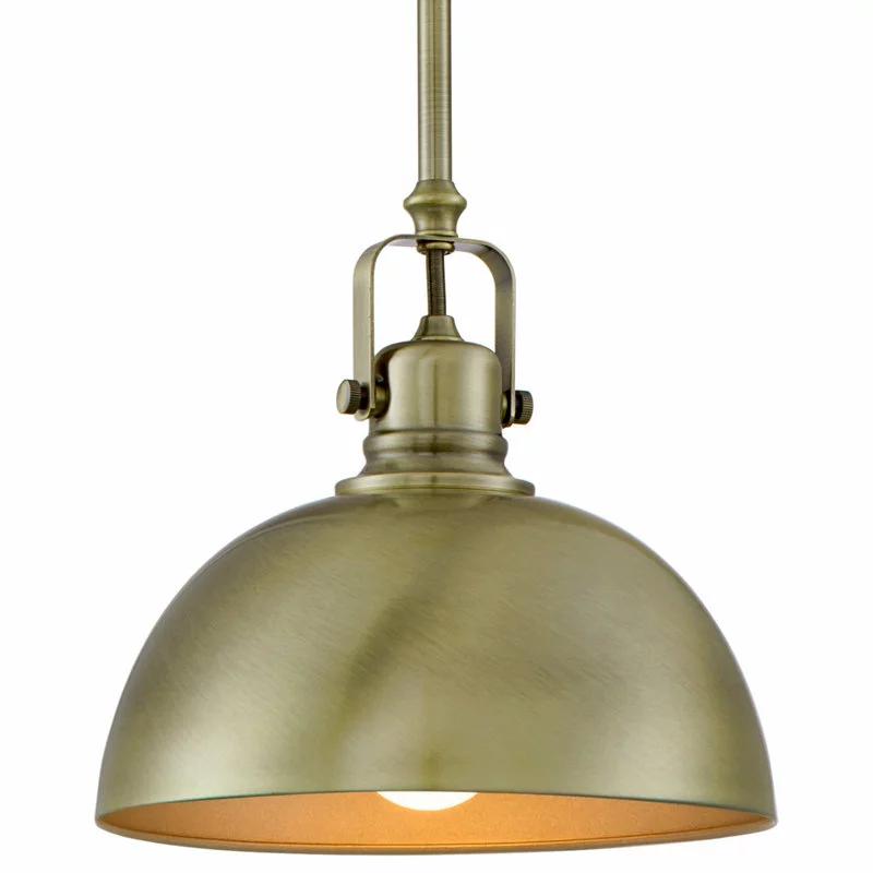 - INDUSTRIAL STYLE: Pendant light with a brushed brass finish features a versatile canopy and shade swivel joints that allow for easy installations even on sloped ceilings. This bright fixture contains downrods for an adjustable height to suit your needs