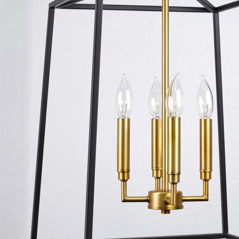 - TWO-TONE DESIGN: Heavy duty metal pendant chandelier showcases decorative warm brass accents, a smooth black finish and a classic foyer light style. Its open design elevates your decor while fitting many decors including modern, industrial & transitional
