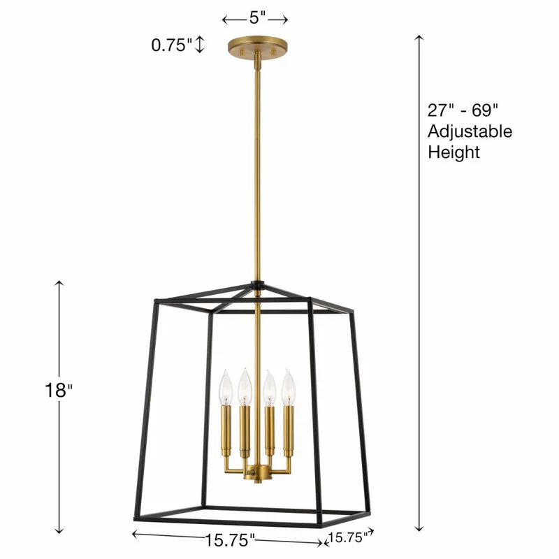 - DIMENSIONS: Foyer Pendant Light: 18″ (H) x 15.75″ (L) x 15.75″ (W), Canopy: 5″ (D) x 0.75″ (H). Includes (2) 6″ and (3) 12″ for desired hanging height. Minimum/Maximum: 27″ – 69″
